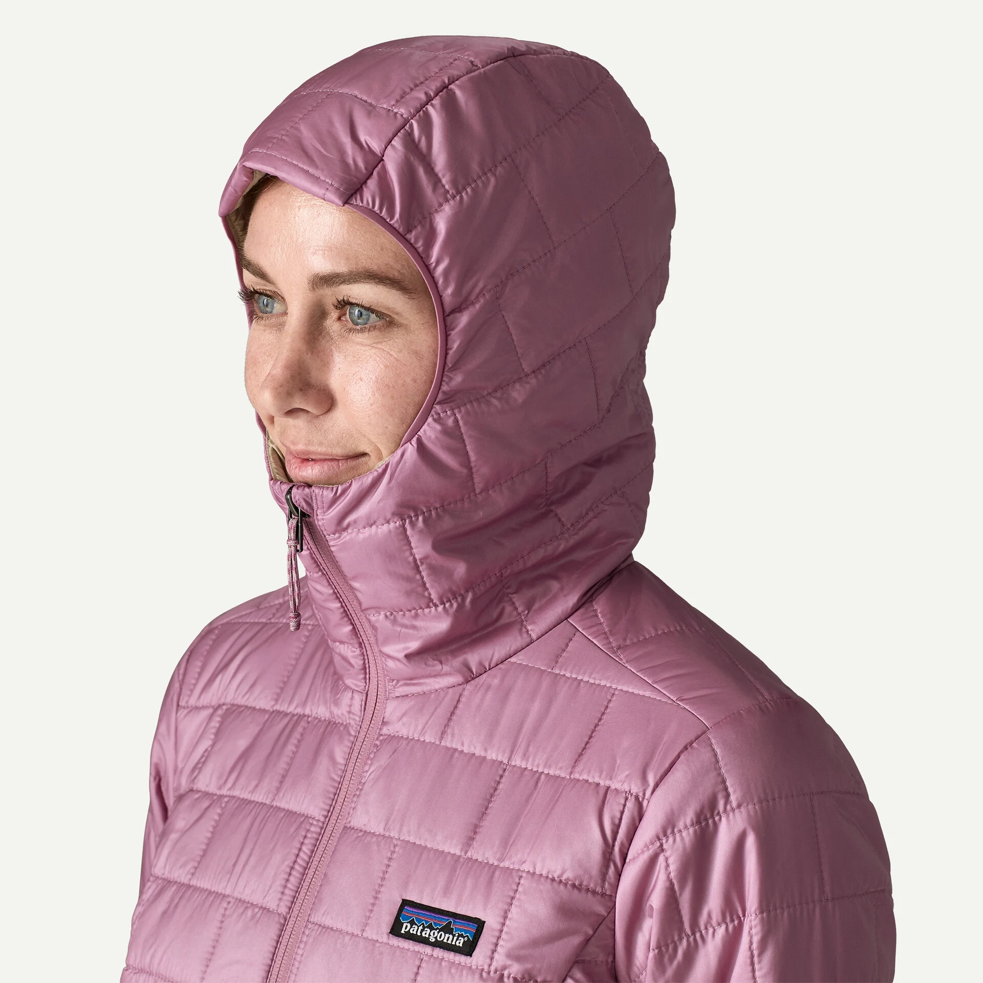 Patagonia Womens Nano Puff Hoody i sort og light violet er din go-to jakke, når vinden bider på vandet, eller du har brug for et varmt lag efter en tur på SUP eller i kajak. Den er let, komprimerbar og nem at have med i tasken, så du altid har ekstra varme ved hånden.